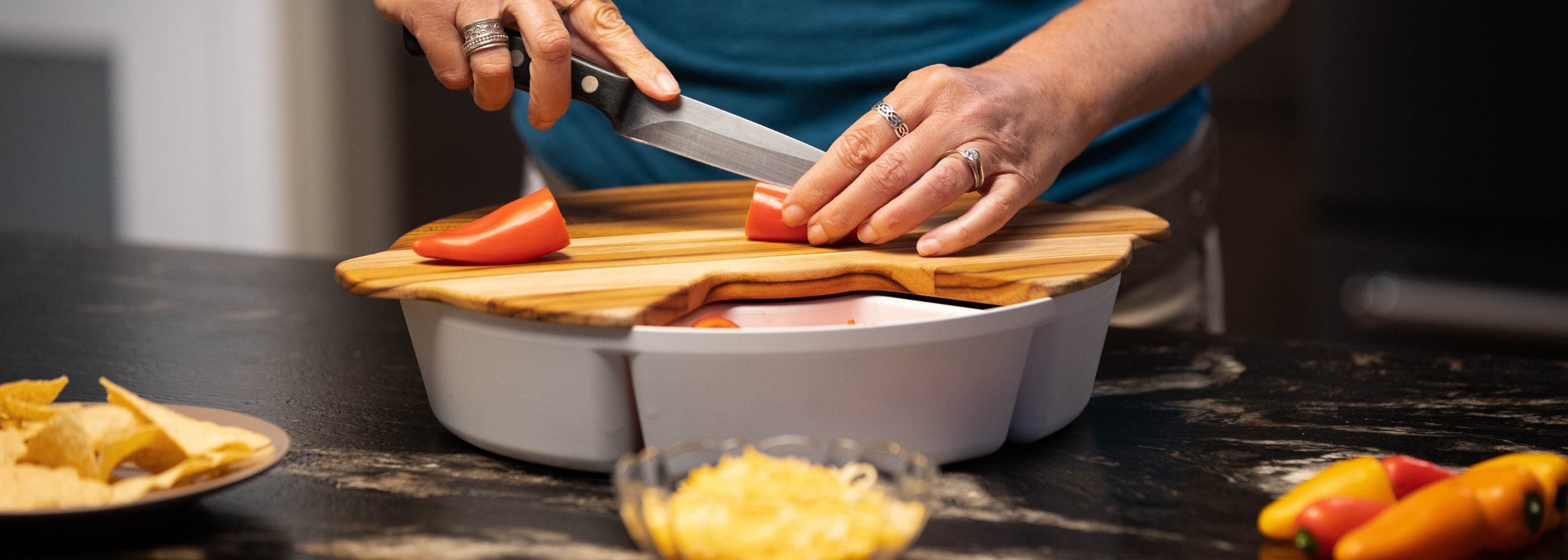SwivelServe began in 2019 on an ordinary taco night. Like many home cooks, I was juggling chopped peppers, onions, tomatoes, and lettuce on an overcrowded cutting board. Then came the hassle of transferring everything into bowls, which quickly took over my already small apartment kitchen. By the time dinner was ready, the counter looked like a disaster, and cleanup was even worse.